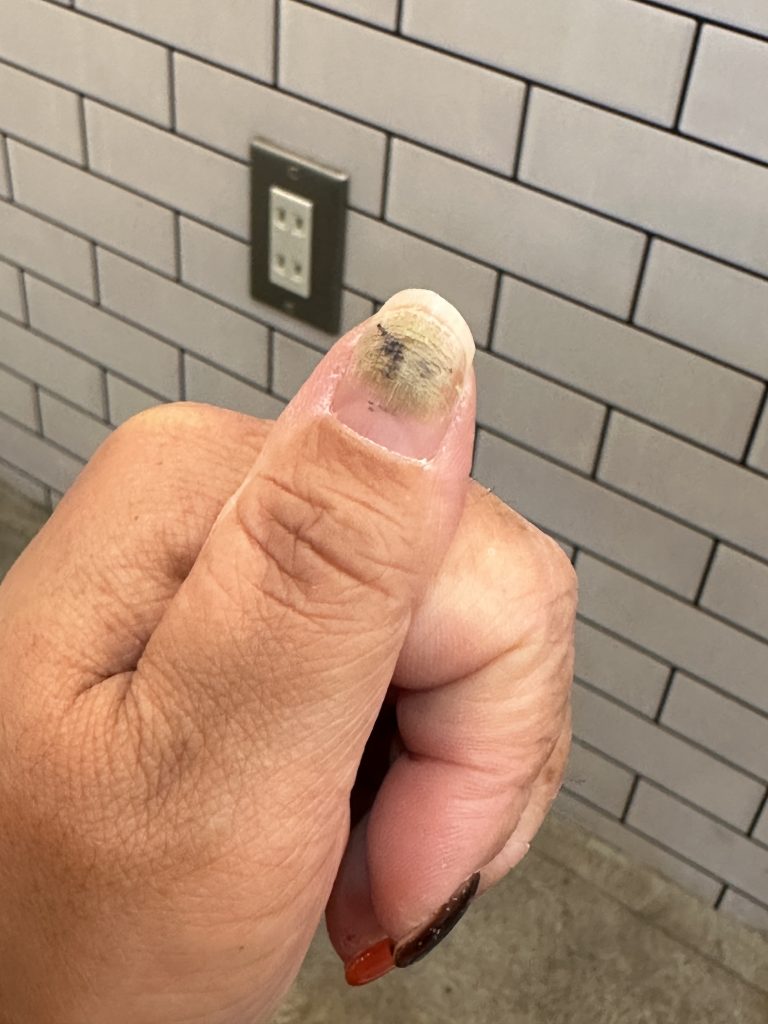浮いたジェルネイルと爪の間に水が入り込み、そこに緑膿菌が繁殖してグリーンネイルになるのです